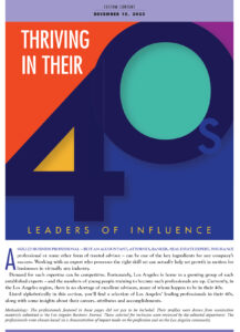 Listed alphabetically in this section, you’ll find a selection of Los Angeles’ leading professionals in their 40s, along with some insights about their careers, attributes and accomplishments.